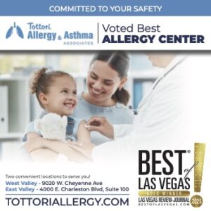 We are honored to announce that Tottori Allergy & Asthma Associates has been voted the Best Allergy Center in the 2025 Best of Las Vegas Awards! This recognition is an incredible milestone for our practice, and we are deeply grateful to our patients and the Las Vegas community for your continued support and trust.